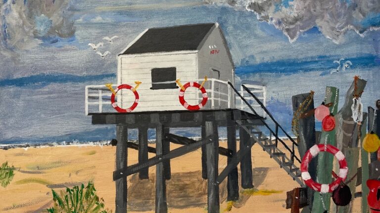 Titel werk: Het drenkelingenhuisje op Vlieland met allerlei aangespoelde attributen, het huisje wordt voor velen doeleinden gebruikt o.a. kan je er trouwen.