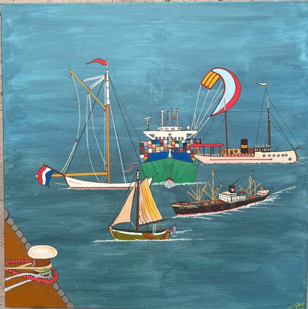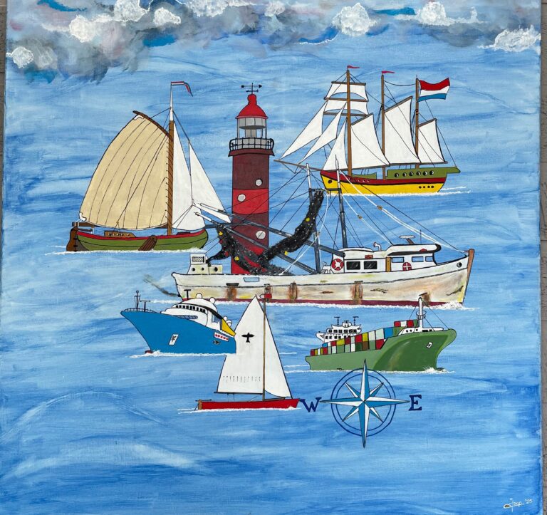 Mijn creatieve reis begon met kleine schilderijen, maar is nu uitgegroeid tot iets groters en expressievers. Met dynamische lijnen en levendige, gekleurde achtergronden geef ik aan mijn schilderij een nieuwe dimensie. Elk werk is een harmonie tussen kleur en vorm, een ruimte waarin muziek en bewegingen samensmelten over het water waar mijn grote liefde ligt …. O.a de maritieme wereld.