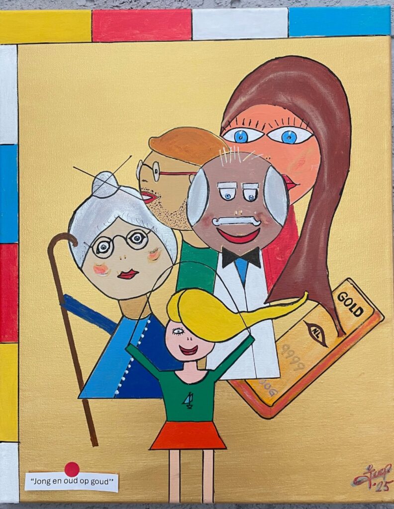 Titel werk: Voor een goede vriend zijn werkzame leven op het doek gezet. Natuurlijk in mijn style.